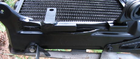 Both sides of the radiator frame were trimmed to provide clearance for the new brackets to be attached.